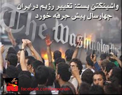 واشينگتن پست در مقاله خود می نويسد: چهارسال پيش، انتخابات، تغيير رژيم را در ايران جرقه زد و ميليونها تن به اعتراض برخاستند. علی خامنه ای، حاکم غيرمنتخب با دستگيری و اعمال خشونت، قيام را سرکوب کرد و نشان داد که حتی يک باريکهٴ کم رقابت سياسی هم بيش از حد، زياد است.