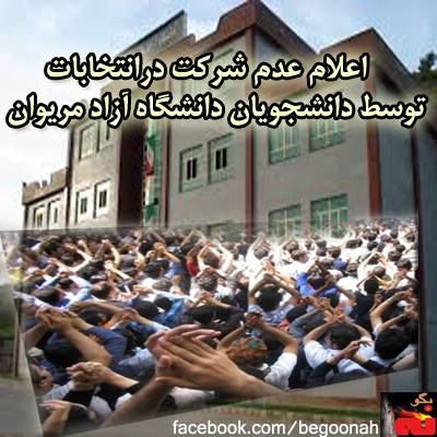 اخبار اعلام عدم شرکت در انتخابات توسط علوم پايه دانشگاه آزاد واحد مريوان Date: جون 3, 2013Author: begoonah 0 دیدگاه دانشجويان اين دانشگاه با نوشتن اعلاميه اي در برد هاي دانشگاه اعلام کرده اند در انتخابات شرکت نخواهند کرد. اين اعلاميه در برخي از ميزهاي كلاسهاي دانشگاه نيز گذاشته شده بود . دانشجو آنلاين اشتراکگذاری این:بیشتر به اشتراک گذاشتن در فیسبوک (در پنجرۀ تازه باز میشود) فیسبوک Share on X (در پنجرۀ تازه باز میشود) X چاپ (در پنجرۀ تازه باز میشود) چاپ Share on Telegram (در پنجرۀ تازه باز میشود) تلگرام Share on WhatsApp (در پنجرۀ تازه باز میشود) واتساپ