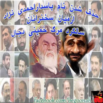 نام پاسدار احمدی نژاد از میان سخنرانان سالگرد مرگ خمینی دجال حذف شد