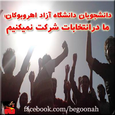 روز 9 خرداد دانشجويان دانشگاه آزاد واحد اهر در بيانه اي که در تابلوهاي اعلانات دانشگاه زده شده اعلام کرده اند در انتخاباتي که هيچ دردي از آنها دوا نميشود ،