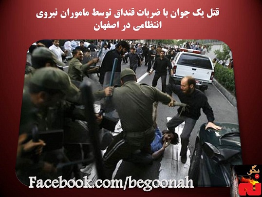بنا به گزارشها دريافتي مأموران سركوبگر نيروي انتظامي يك جوان را با ضربات قنداق سلاح به قتل رساندند.