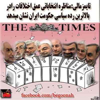 تايمز مالي چاپ لندن در مورد نمايش سومين مناظره انتخاباتي رژيم نوشت: بحثهاي داغي كه در مناظره انتخاباتي بالا گرفت، يك نظر اجماليِ نادر است كه عمق اختلافات را در بالاترين رده سياسي حكومت ايران نشان ميدهد.