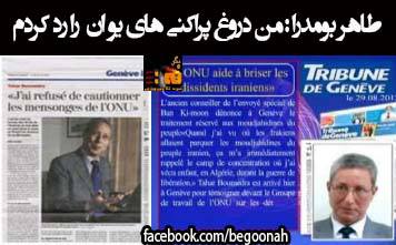 تريبون دو ژنو:طاهر بومدرا :من دروغ پراكني هاي UN را رد كردم
