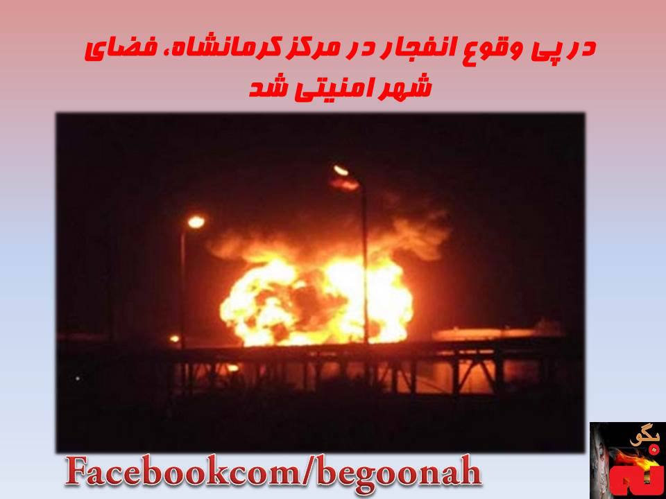 صبح امروز انفجار بزرگی «پارک شیرین» واقع در مرکز شهر کرمانشاه در محلەی «آرامگاه» را بە لرزە در آورد کە در پی آن شهر بە کلی میلیتاریزە شدە و فضایی پلیسی بر شهر حاکم شدە است.