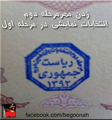 اخبار زدن مُهر مرحله دوم انتخابات در مرحله اول Date: جون 14, 2013Author: begoonah 0 دیدگاه این عکس را یکی از خوانندگان سایت ایران پرس نیوز از ایران ارسال کرده و نوشته است: به این عکس با دقت نگاه کنید…امروز مُهر مرحله دوم انتخابات را زدند. اشتراکگذاری این:بیشتر به اشتراک گذاشتن در فیسبوک (در پنجرۀ تازه باز میشود) فیسبوک Share on X (در پنجرۀ تازه باز میشود) X چاپ (در پنجرۀ تازه باز میشود) چاپ Share on Telegram (در پنجرۀ تازه باز میشود) تلگرام Share on WhatsApp (در پنجرۀ تازه باز میشود) واتساپ