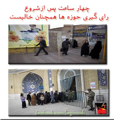 بر اساس گزارشات رسیده ازتهران و شهرهاي مختلف كشور از جمله اصفهان، اهواز، كرمان، اردبيل، بجنورد، شيراز، كرج، .. چهار ساعت پس از شروع رأي گيري، حوزه هاي راي گيري خالي است و نمايش انتخابات با بايكوت گسترده مردم مواجه است.