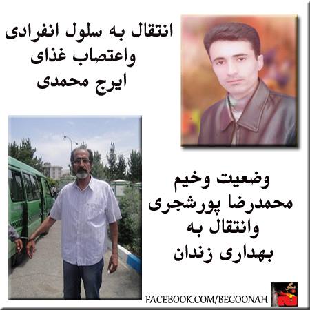وبلاگ نويس آقای محمدرضا پورشجری که در زندان مرکزی کرج زندانی است، در پی وخامت وضع جسمی اش توسط هم بندان خود به بهداری زندان منتقل گرديد. ميترا پورشجری دختر اين زندانی سياسی گفته است: ”پدرم طی تماسی تلفنی اعلام کرد، اگر من مردم بايد من را کالبد شکافی کنند، زيرا پزشکان زندان حتی نام آمپول هايی که به من تزريق می کنند را نمی گويند و من اطلاع ندارم چه داروهايی وارد بدن من می شود“.
