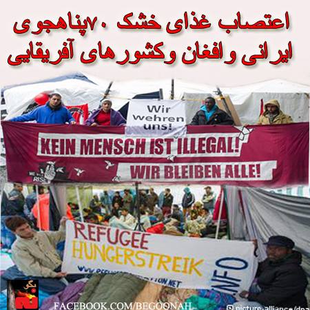 ۷۰ پناهجو از روز شنبه اول تیر، برابر ۲۲ ژوئن، در میدان «ریندرمارکت» در مرکز شهر مونیخ به منظور اعتراض به وضعیت زندگیشان دست به اعتصاب غذا زدهاند. این پناهجویان از کشورهای مختلفی مثل ایران، افغانستان و کشورهای افریقایی هستند.