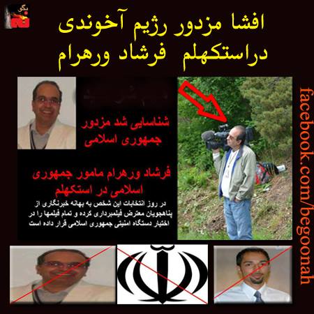 فرشاد ورهرام دوست نزدیک تریتا پارسی که پیشتر دستش برای ساکنین استکهلم رو شده بود و در رابطه با این شخص به صورت مفصل افشاگری گسترده ای انجام شد، اینبار در روز انتخابات ریاست جمهوری در برابر سفارت در تظاهرات تحریم انتخابات شرکت میکند و به بهانه خبرنگاری (البته ایشان در هیچ کجایی خبرنگاری نمیکنند و حتا یک وبلاگ ساده نیز ندارند) از تمامی معترضین به انتخابات فیلمبرداری حرفه ای انجام میدهد و پس از گذشت چند هفته از انتخابات حتی یک دقیقه از فیلمبرداری ایشان در هیچ کجا منتشر نشده است.