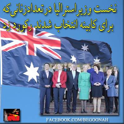 اخبار نخست وزير استراليا در تعداد زناني كه براي كابينه انتخاب شدهاند، ركورد زد Date: ژوئیه 2, 2013Author: begoonah 0 دیدگاه كابينه جديد استراليا با معروفي شدن 6 زن توسط كوين راد، نخستوزير سوگند خورد و تمركز خود را قبل از انتخابات آتي روي اقتصاد قرار داد.راد گفت: ”من مفتخرم كه كابينه ما بيشترين تعداد زن نسبت به هر كابينه ديگر در تاريخ استراليا را دارد“. دانشجو آنلاين اشتراکگذاری این:بیشتر برای اشتراکگذاشتن فیسبوک خود کلیک کنید (در پنجرۀ تازه باز میشود) فیسبوک اشتراک گذاشتن توسط اس ام اس (در پنجرۀ تازه باز میشود) X برای چاپ کردن کلیک کنید (در پنجرۀ تازه باز میشود) چاپ برای اشتراکگذاری روی Telegram کلیک کنید (در پنجرۀ تازه باز میشود) تلگرام برای اشتراکگذاری روی WhatsApp کلیک کنید (در پنجرۀ تازه باز میشود) واتساپ
