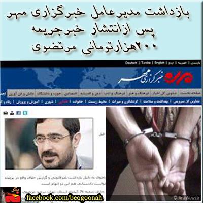 بازداشت مدیر عامل خبرگزاری حکومتی مهر با حکم دادستانی تهران انجام شده است.انتشار خبر جریمه ۲۰۰ هزار تومانی سعید مرتضوی متهم جنایت کهریزک و تبرئه شدن وی از معاونت در قتل محمد کامرانی بازتاب گسترده ای در رسانه ها و صفحات اجتماعی داشته است.