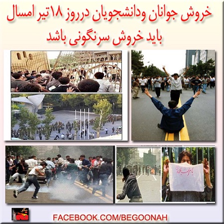 از اين روست که اقشار آگاه ميهن ما و دانشجويان و استادان و تحصيلکردگان و جوانان کشور ما همواره عليه اين رژيم خروشيده اند و باز هم بايد هر فرصتی را به خروش و قيام عليه اين نظام تبديل کنند. هيجده تير يکی از آن فرصتها بود که دانشگاههای ايران عليه اين رژيم بپا خاستند. و امسال نيز در شرايطی که رژيم در بحرانها غرقه است، سالروز هيجده تير باز فرصتيست که خروشها را تکرار کنيم و خواستار سرنگونی اين رژيم شويم تا به نکبتها و تباهيهای اين حاکميت ضدمردمی پايان بخشيم.