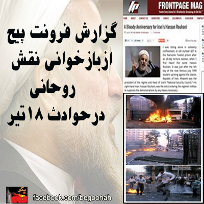 هفته نامه «فرونت پیج» روز سه شنبه 09-07-2013 در گزارشی با عنوان «سالگرد خونین برای حسن روحانی» به بازخوانی حاثه 18 تیر 1378 شمسی و نقش حسن روحانی رئیس جمهور جدید ایران در سرکوب دانشجویان در ژوئیه 1999 پرداخته است.