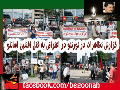 بدنبال دعوت « شورای پشتیبانی از مبارزات مردم در ایران – کانادا » و همچنین با حمایت « اتحاد بین المللی در حمایت از کارگران در ایران – واحد تورنتو »، تظاهراتی در اعتراض به قتل افشین اسانلو در روز ۶ جولای در شهر تورنتو برگزار شد.