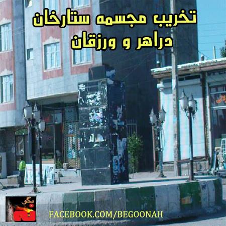 تخريب مجسمه ستارخان در اهر و ورزقان