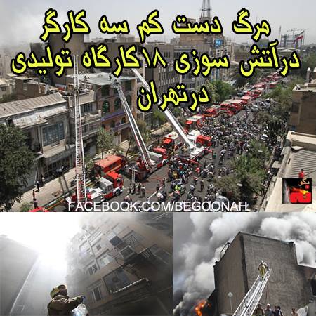 صبح امروز ۱۸ کارگاه تریکو، پارچه و سلیکون در یک ساختمان شش طبقهای واقع در خیابان جمهوری تهران آتش گرفت و دستکم سه کارگر در این حادثه کشته شدند.