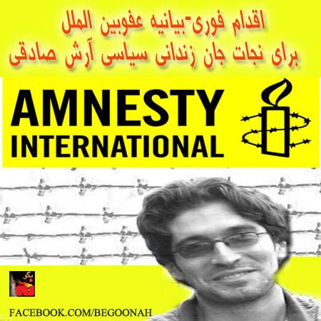 عفو بين الملل با صدور يك بيانيه اقدام فوري، به توقف شكنجه و آزادي زنداني سياسي، آرش صادقي از زندانهاي ديكتاتوري آخوندي، فراخوان داد.