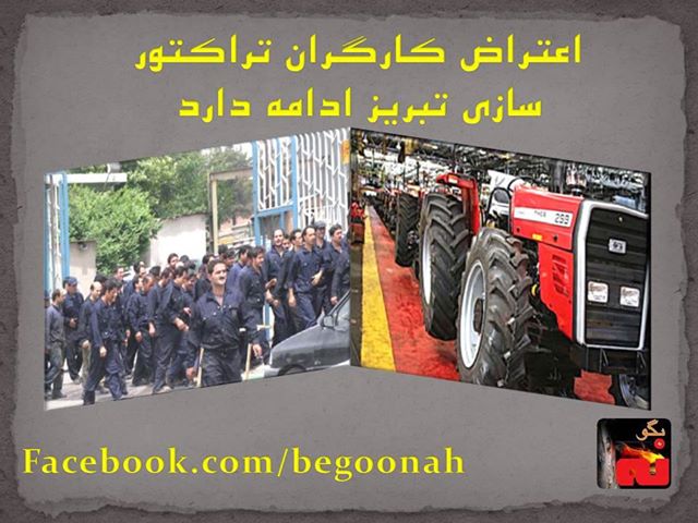 براساس ادعای این کاربر ایلنا کارگران کارخانه ماشین آلات صنعتی تراکتور سازی تبریز از روز ۱۹ تا ۲۱ تیر ماه به نشانه اعتراض در مقابل محل کار خود تجمع کردهاند.