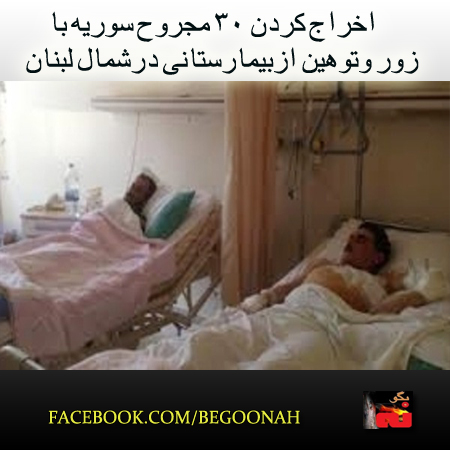 مدیریت بیمارستانی در شمال لبنان، ۳۰ مجروح سوری را که در خشونت های داخل سوریه زخمی شده اند، اخراج کرده و بیمارستان را تعطیل کرد.