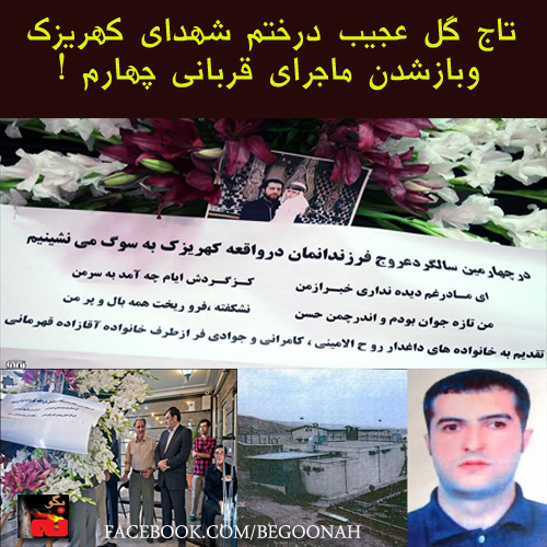 به نظر می رسد تاج گل بزرگ این خانواده در مراسم قربانیان کهریزک، تاکید مجدد آنان بر این است که جوانشان یکی از «4» قربانی کهریزک است.