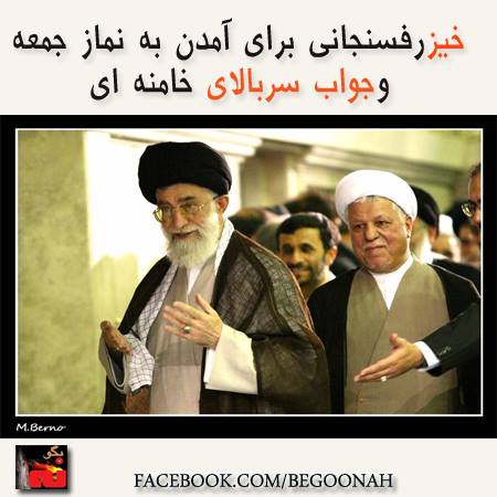 برخي از امام جمعه هاي رژيم از جمله در شميرانات نيز خواستار بازگشت رفسنجاني به نماز جمعه شدند. (روزنامه حكومتي مردم سالاري ـ 25تير92)