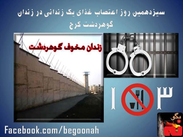 سیزدهمین روز اعتصاب غذای یک زندانی در زندان گوهردشت کرج