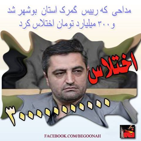 بنا به گزارش دریافتی، ابوالفضل اکبر پور مدیر کل گمرک استان بوشهر که بارها از سوی مقامات حکومتی بعنوان مدیر نمونه شناخته شد با پایان یافتن عمر دولت نهم بخشهایی مهم از تخلفات مالی و مافیایی وی در گمرکات بوشهرکشف گردید. در حالیکه مقامات حکومتی در استان بوشهر قصد دارند از افشای خبر مربوط به اختلاس دهها میلیارد تومانی در گمرک بوشهر جلوگیری نمایند اما آخرین شایعات جاری در میان بازرگانان و تجار بوشهری حکایت از حدااقل 300 میلیارد تومان اختلاس میباشد که بصورت مجوزهای تقلبی و فروش ارزان آنها. وی و بستگانش درپایتخت اقدام به ورود اتومبیل های پورشه چند صد میلیون تومانی از طریق پایانه های بوشهر مینمودند. گفته میشود وی اخیرا در مصاحبه ای با سایت حکومتی خلیج فارس در استان بوشهر از کشف این قضیه خبر میدهد و چنانچه قرائن نشان میدهد وی برای مبرا نمودن خود از قضیه فضاحت بار مالی ؛ و پس از انعکاس خبر مربوط به اختلاس در گمرک بوشهر با ارسال جوابیه ای اظهار داشته :خودمان تخلف را كشف كرديم.