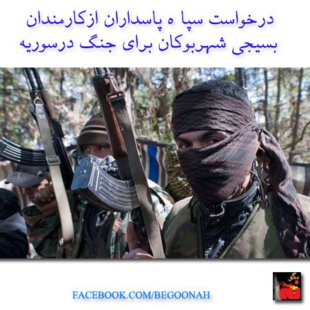 درخواست سپاه پاسداران شهر بوکان ازکارمندان بسیجی برای جنگ درسوریه