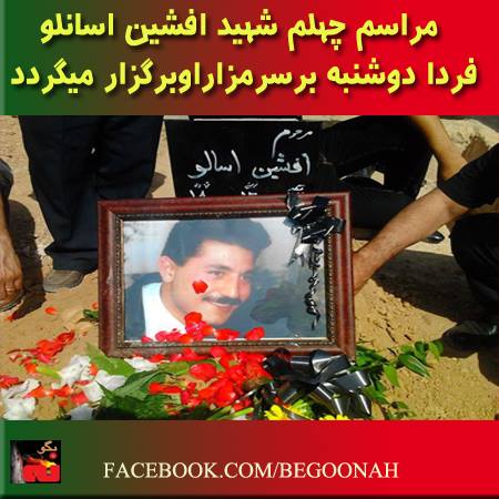 روز دوشنبه هفتم مرداد ساعت 18:30 مراسم يادبودي بمناسبت چهلم شهادت افشين اسانلو در آرامگاه وي واقع در بهشت زهرا، قطعه 310 رديف 18 شماره 16 برگزار ميگردد.مراسم