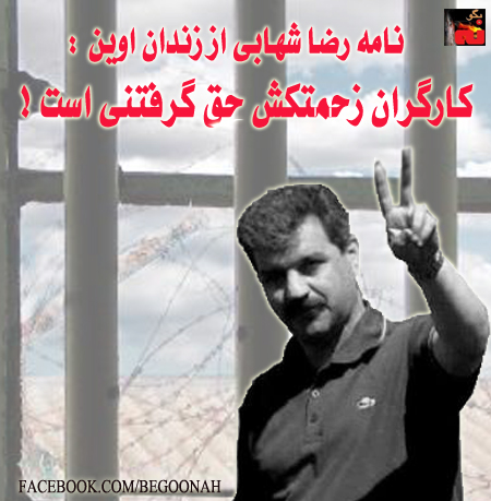 آقای رضا شهابی کارگر زندانی سندیکای شرکت واحد اتوبوس رانی تهران و حومه، در استانه ی مراسم تحلیف حسن روحانی نامه ای خطاب به کارگران منتشر کرده است :