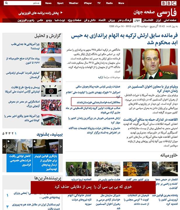 گالری فیلم و تصویر خبردروغی که توسط بی بی سی پخش شد وسریع حذف شد Date: آگوست 6, 2013Author: begoonah 0 دیدگاه اشتراکگذاری این:بیشتر برای اشتراکگذاشتن فیسبوک خود کلیک کنید (در پنجرۀ تازه باز میشود) فیسبوک اشتراک گذاشتن توسط اس ام اس (در پنجرۀ تازه باز میشود) X برای چاپ کردن کلیک کنید (در پنجرۀ تازه باز میشود) چاپ برای اشتراکگذاری روی Telegram کلیک کنید (در پنجرۀ تازه باز میشود) تلگرام برای اشتراکگذاری روی WhatsApp کلیک کنید (در پنجرۀ تازه باز میشود) واتساپ