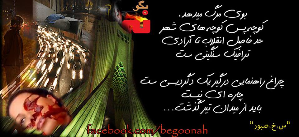 گالری فیلم و تصویر شعر Date: آگوست 11, 2013Author: begoonah 0 دیدگاه بوی مرگ میدهد، کوچه پس کوچه های شهر حد فاصل انقلاب تا آزادی ترافیک سنگینی ست چراغ راهنمایی درگیر یک دگردیسی ست چاره ای نیست باید از میدان تیر گذشت… «س.خ.صبور» اشتراکگذاری این:بیشتر برای اشتراکگذاشتن فیسبوک خود کلیک کنید (در پنجرۀ تازه باز میشود) فیسبوک اشتراک گذاشتن توسط اس ام اس (در پنجرۀ تازه باز میشود) X برای چاپ کردن کلیک کنید (در پنجرۀ تازه باز میشود) چاپ برای اشتراکگذاری روی Telegram کلیک کنید (در پنجرۀ تازه باز میشود) تلگرام برای اشتراکگذاری روی WhatsApp کلیک کنید (در پنجرۀ تازه باز میشود) واتساپ