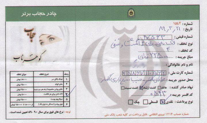 گالری فیلم و تصویر سرکوب دختران ایران زمین و ایجاد خفقان برای آنان به بهانه جریمه برای آرایش این بانوان Date: آگوست 16, 2013Author: begoonah 0 دیدگاه اشتراکگذاری این:بیشتر به اشتراک گذاشتن در فیسبوک (در پنجرۀ تازه باز میشود) فیسبوک اشتراکگذاری در X (در پنجرۀ تازه باز میشود) X چاپ (در پنجرۀ تازه باز میشود) چاپ اشتراکگذاری در تلگرام (در پنجرۀ تازه باز میشود) تلگرام اشتراکگذاری در واتساپ (در پنجرۀ تازه باز میشود) واتساپ
