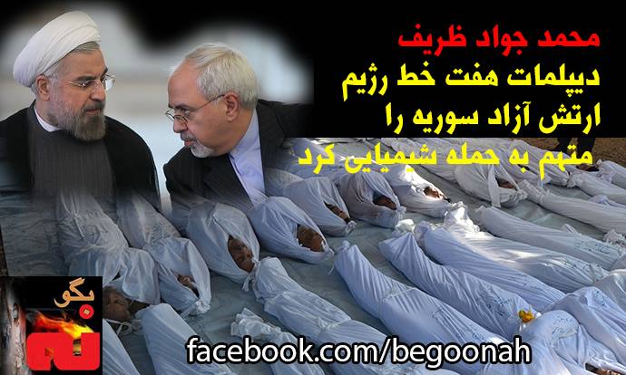 روز گذشته در پی بکار گیری اسلحه شیمیایی در حومه دمشق ، بیش از 1300 نفر که بیشتر آنها زن و کودک بودند،جان خود را از دست دادند. در حالی که کارشناسان سازمان ملل بررسی کاربرد سلاح شیمیایی در سوریه را به پایان نبردهاند ظریف وزیرخارجه رژیم گفت: «در حالی كه بازرسان سازمان ملل در دمشق حضور دارند و دولت این كشور با تسلط در حال عقب راندن تروریستها است، چگونه دولت به چنین اقدامی دست میزند؛ این عمل جنایتكارانه توسط گروههای تروریستی انجام شده زیرا منافع آنها در گروی تشدید بحران در سوریه و بینالمللی كردن آن است.»