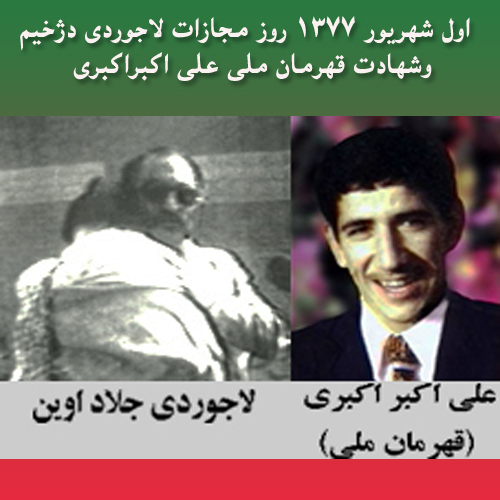 گالری فیلم و تصویر اول شهریور 1377 روز مجازات لاجوردی دژخیم خمینی دجال و شهادت علی اكبر اكبری Date: آگوست 23, 2013Author: begoonah 0 دیدگاه اشتراکگذاری این:بیشتر برای اشتراکگذاشتن فیسبوک خود کلیک کنید (در پنجرۀ تازه باز میشود) فیسبوک اشتراک گذاشتن توسط اس ام اس (در پنجرۀ تازه باز میشود) X برای چاپ کردن کلیک کنید (در پنجرۀ تازه باز میشود) چاپ برای اشتراکگذاری روی Telegram کلیک کنید (در پنجرۀ تازه باز میشود) تلگرام برای اشتراکگذاری روی WhatsApp کلیک کنید (در پنجرۀ تازه باز میشود) واتساپ