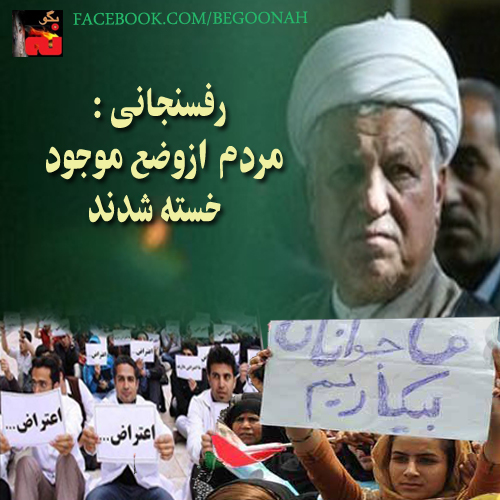 رفسنجانی با نگرانی از موقعيت رژيم آخوندی به خامنه ای گوشزد کرد: مردم از وضع پيش آمده خسته شدند. نگرانی از آينده کشور، خطر وجود جنگ، شرايط سخت به لحاظ اقتصادی و وجود يک فضای امنيتی باعث تغيير شد.