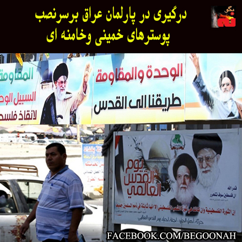 بیلبوردهای خمینی و خامنهای پارلمان عراق را به تشنج کشاند