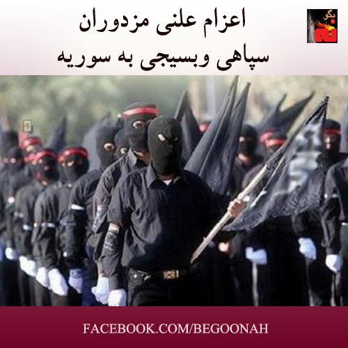 اخبار اعزام علنی مزدوران سپاهی و بسیجی به سوریه Date: آگوست 30, 2013Author: begoonah 0 دیدگاه به گزارش حکومتی فارس،این افراد که خود را اعضای «ستاد جوانان داوطلب اعزام به سوریه» معرفی کردندبا انتشار اطلاعیه ایی خواستار اعزام به سوریه شدند . اشتراکگذاری این:بیشتر برای اشتراکگذاشتن فیسبوک خود کلیک کنید (در پنجرۀ تازه باز میشود) فیسبوک اشتراک گذاشتن توسط اس ام اس (در پنجرۀ تازه باز میشود) X برای چاپ کردن کلیک کنید (در پنجرۀ تازه باز میشود) چاپ برای اشتراکگذاری روی Telegram کلیک کنید (در پنجرۀ تازه باز میشود) تلگرام برای اشتراکگذاری روی WhatsApp کلیک کنید (در پنجرۀ تازه باز میشود) واتساپ