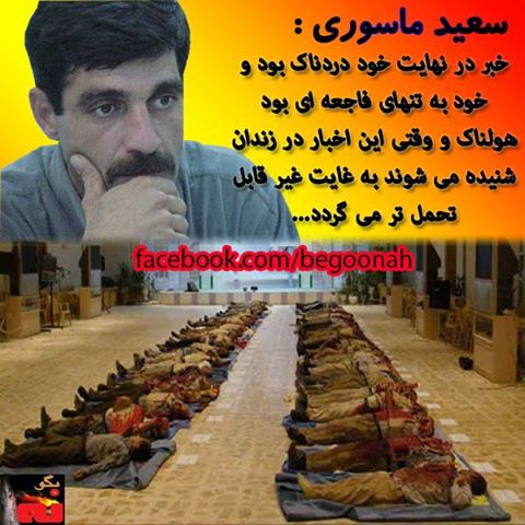 سعید ماسوری زندانی سیاسی زندان گوهردشت در طی نامه ای پیرو قتل عام اخیر در قرارگاه اشرف میگوید: «خبر در نهایت خود دردناک بود و خود به تنهای فاجعه ای بود هولناک و وقتی این اخبار در زندان شنیده می شوند به غایت غیر قابل تحمل تر می گردد»