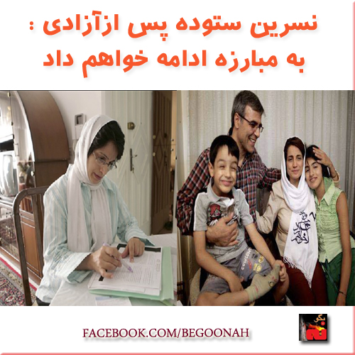 نسرین ستوده، وکیل مدافع و فعال حقوق بشر چهارشنبه شب پس از آزادی از زندان اوین به خبرگزاری فرانسه در تهران گفته که به مبارزه برای دفاع از حقوق بشر در ایران ادامه خواهد داد.