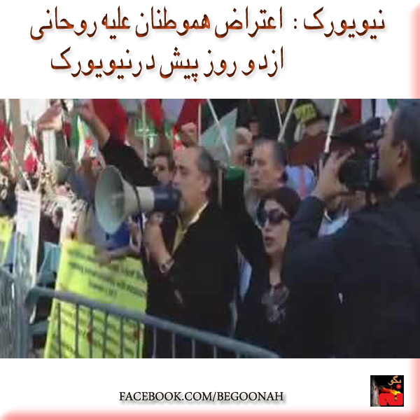 نيويورک: هموطنان غيرتمند و آزاده دو روز پيش از ورود آخوند روحاني تظاهرات خود را عليه اين قاتل مردم ايران شروع کردند. تظاهرات ايرانيان روبه روی هتل محل استقرار روحانی با شور و خروش بسيار شکل گرفت. آنها با خشم بسيار فرياد می زدند: