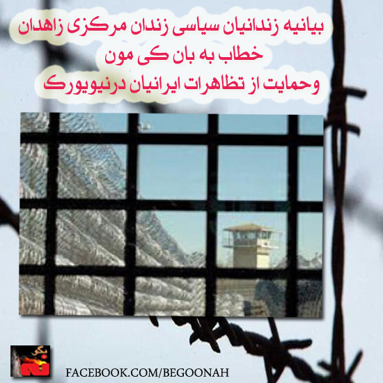ما زندانیان سیاسی زندان مرکزی زاهدان از تظاهراتی كه قرار است جلوي سازمان ملل متحد در نیویورک انجام شود حمايت ميكنيم ما زندانيان سیاسی زندان مركزي زاهدان و بلوچستان ايران ازهمين جا اعلام همبستگي با اين عزيزان ميكنيم.