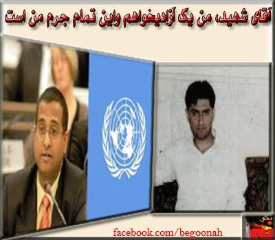 من یک وبلاگ نویس و یک آزادیخواه هستم. ١٩ کتاب نوشته ام و این تمام جرم من است. من از شما و همه مراجع جهانی تقاضای حمایت و پشتیبانی دارم. من تقاضای بازرسی جهانی از وضع این زندان و نقض آشکار حقوق بشر در اینجا را دارم.