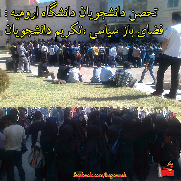 صدها تن از دانشجویان دانشگاه صنعتی ارومیه در اعتراض به عملکرد ریاست دانشگاه و فضای امنیتی حاکم روز یکشنبه ۷ مهر ۹۲ در حیاط دانشگاه صنعتی ارومیه تحصن کردند.