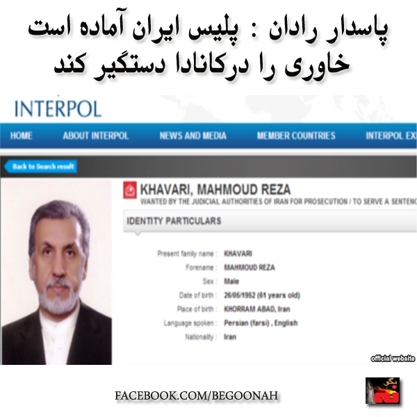 پاسدار رادان: پلیس ایران آماده است خاوری را در کانادا دستگیر کند