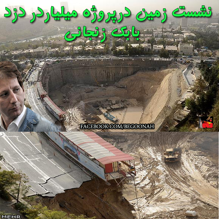 در حالی که سه هفته قبل، «خبرگزاری حکومتی آینده» از انتقال بابک زنجانی از دلالی نفتی به پروژه های شهری خبر داده و نگرانی شماری از اهالی منطقه شهرک غرب و خیابان ایران زمین از احتمال رانش زمین را اعلام نموده بود، خیلی سریع تر از آن چه گمان می شد، این حادثه رخ داد.و بامداد دیروز نشست خیابان رخ داد، در حالی که شاید بسیاری نمی دانستند این پروژه نیز متعلق به میلیاردر معروف، بابک زنجانی است!
