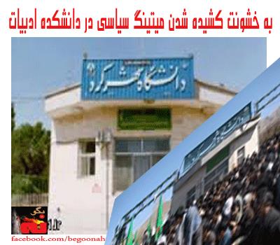 صبح روز دوشنبه 8مهرماه، گروهي از دانشجويان دانشكده ادبيات دانشگاه شهركرد، در صدد برگزاري ميتينگي بودند كه حين برگزاري اين ميتينگ، با هجوم بسيجيان مواجه شدند كه موجب برهم زدن اين ميتنگ شدند .به گزارش دانشجو آنلاین در جريان حمله عوامل بسيج، بيش از 5دانشجو آسيب جسمي ديده و دچار شكستگي هايي در نواحي مختلف بدن شدند.