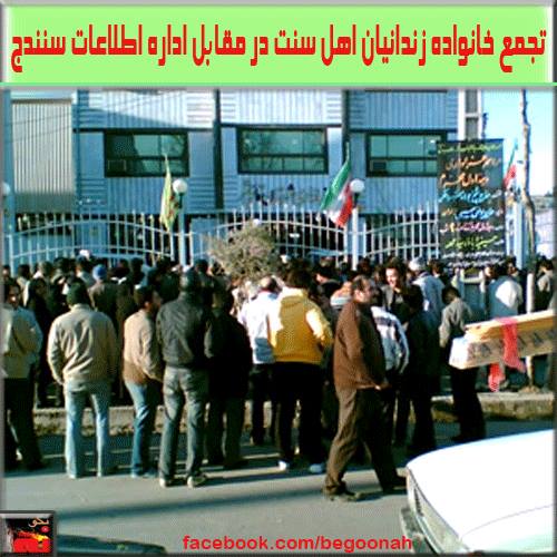 خانواده زندانیان عقیدتی- سیاسی اهل سنت در مقابل اداره اطلاعات سنندج تجمع کرده و مامورین ایشان را تهدید به بازداشت نمودند.