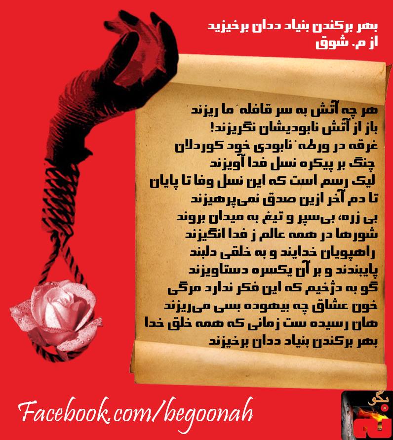 گالری فیلم و تصویر شعری از م. شوق Date: اکتبر 14, 2013Author: begoonah 0 دیدگاه اشتراکگذاری این:بیشتر برای اشتراکگذاشتن فیسبوک خود کلیک کنید (در پنجرۀ تازه باز میشود) فیسبوک اشتراک گذاشتن توسط اس ام اس (در پنجرۀ تازه باز میشود) X برای چاپ کردن کلیک کنید (در پنجرۀ تازه باز میشود) چاپ برای اشتراکگذاری روی Telegram کلیک کنید (در پنجرۀ تازه باز میشود) تلگرام برای اشتراکگذاری روی WhatsApp کلیک کنید (در پنجرۀ تازه باز میشود) واتساپ