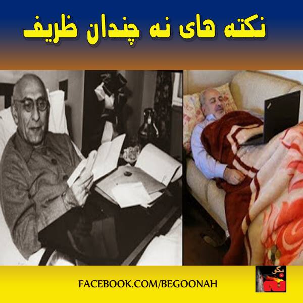 دیشب تو توئیتر کارچاق کن های خارج نشین آخوندها این عکس محمد جواد ظریف را در کنار عکس دکتر محمد مصدق قرار داده بودند و او را به دکتر مصدق تشبیه می کردند البته بر هر عارف و عامی پوشیده نیست که دستگاه اندازی گیری و سنجش و قیاس اینها مدتهاست که زنگ زده ولی به پشت گرمی دکان دونبشی که گشوده اند غالباً بادسنجشان خوب کار میکند و برای کسب وجاهت در دنیای مجازی معرکه گیری میکنند و در دنیای حقیقی هم کارچاق کن روابط حکومت آخوندی با جامعه جهانی هستند و این روزها هم دل میدهند و هم قلوه میگیرند